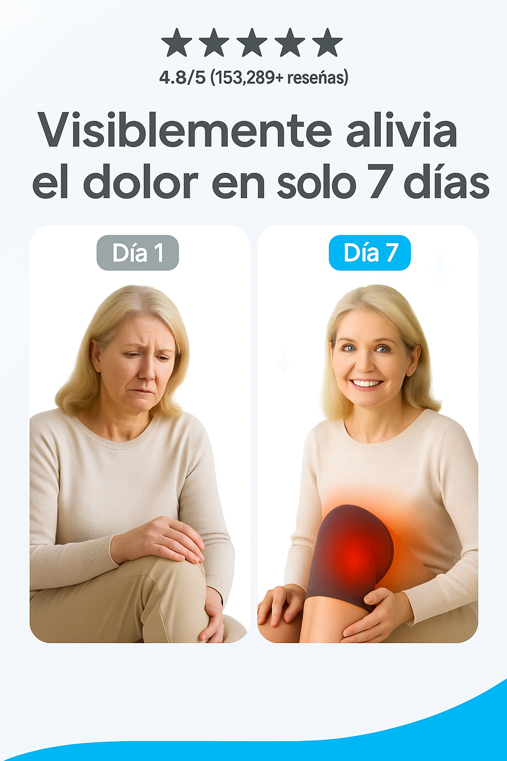 La mayoría siente un calor agradable y alivio en 10 a 15 minutos. Con uso diario, la rigidez disminuye y caminar se vuelve más cómodo y natural.